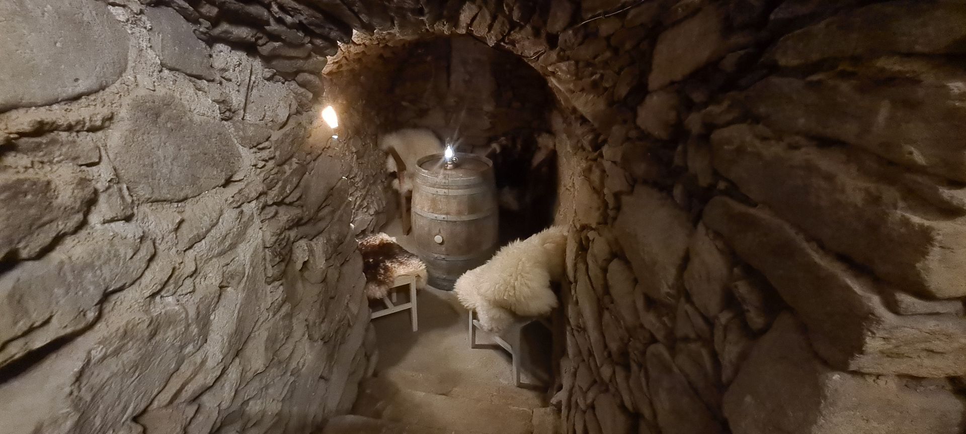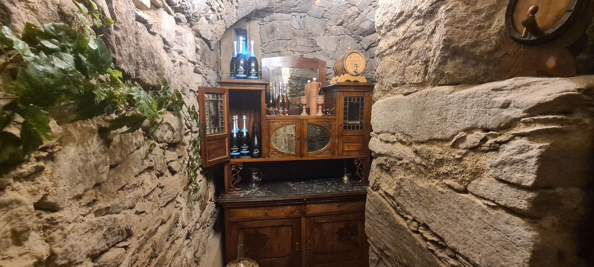 Dovolte abychom Vám nabídli posezení v našem útulném vinném sklípku, tento prostor byl postaven v roce 1471 jako nejstarší stavba v tomto údolí jako původní sklárna. Můžete si prohlédnout kolik různých stavebních zásahů v tomto prostoru bylo během uplynulých 550 let vykonáno. Posaďte se u nás a vychutnejte si klid o pohodu tohoto místa a pokud si budete chtít udělat chvilku ještě krásnější, dovolujeme si Vám nabídnout soubor světových vín.